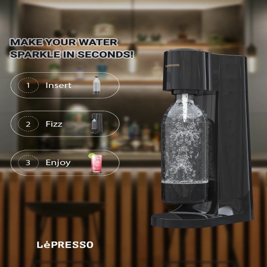 LePresso Sparkling Water Instant Carbonation Machine (مدل LPSWMKBK) دستگاهی منحصربهفرد است که قابلیت تولید سریع نوشیدنی آب گازدار (Sparkling) از آب ساده، آبمیوه یا سایر نوشیدنیغیرگازدار را دارد.